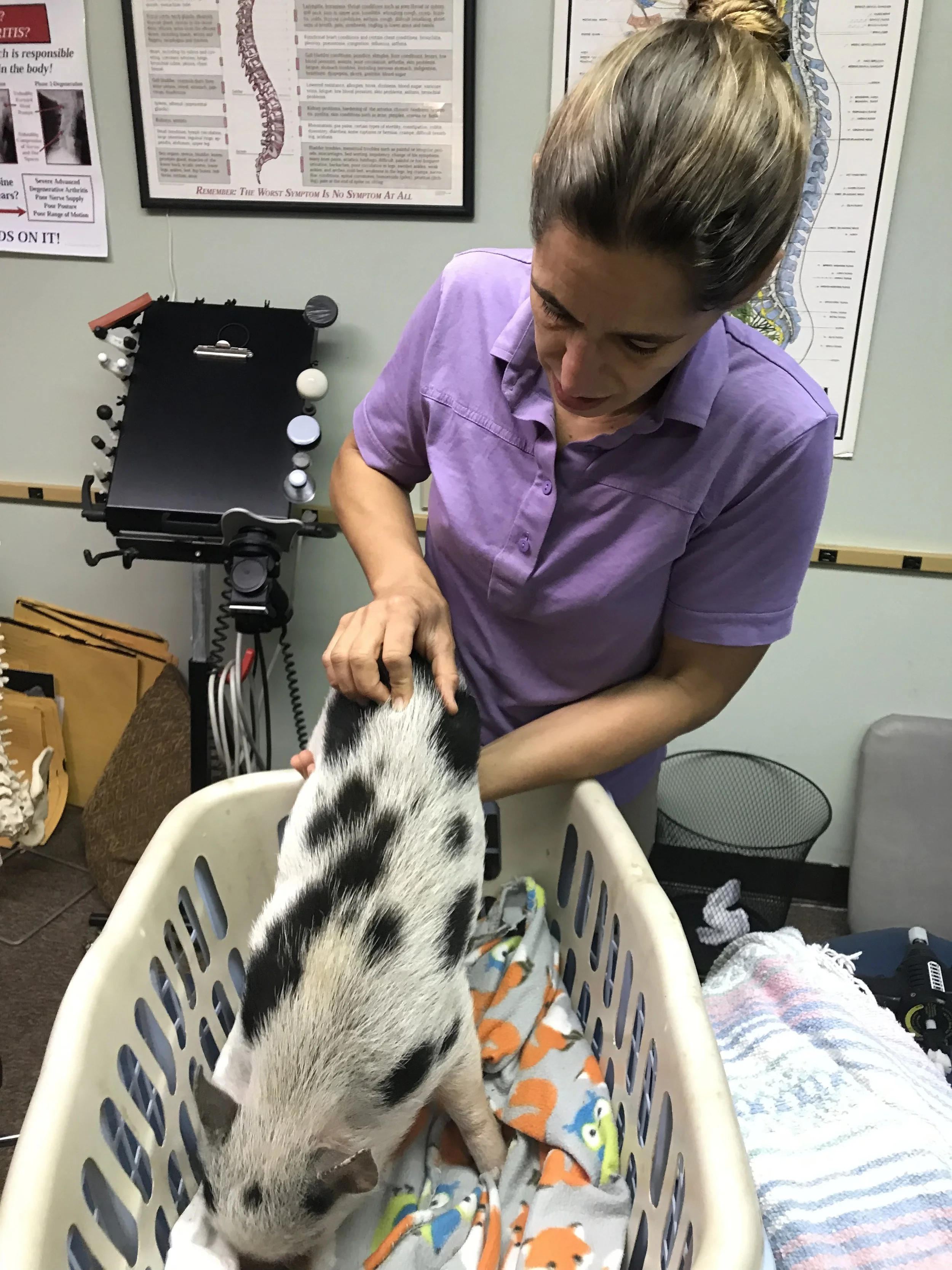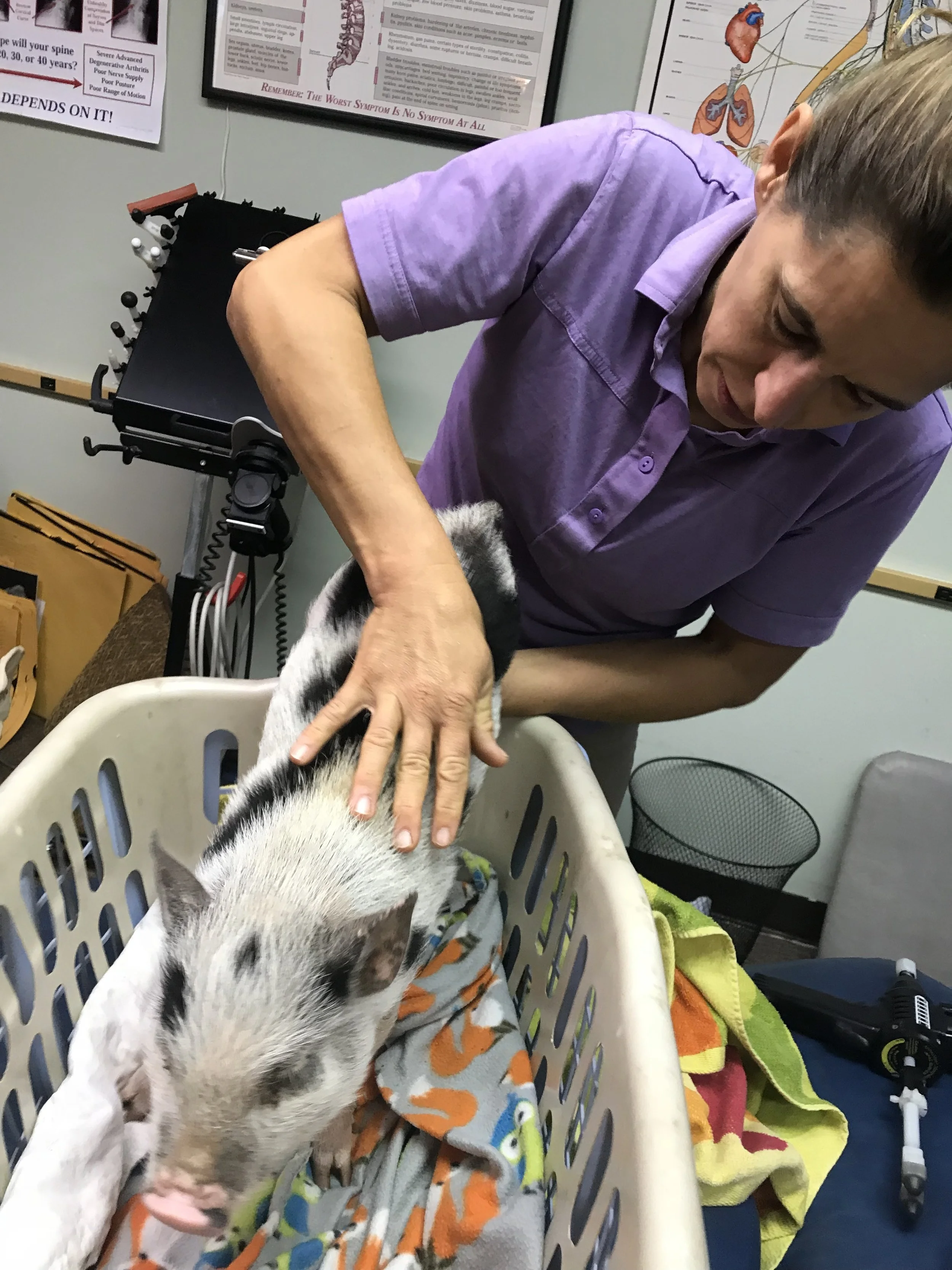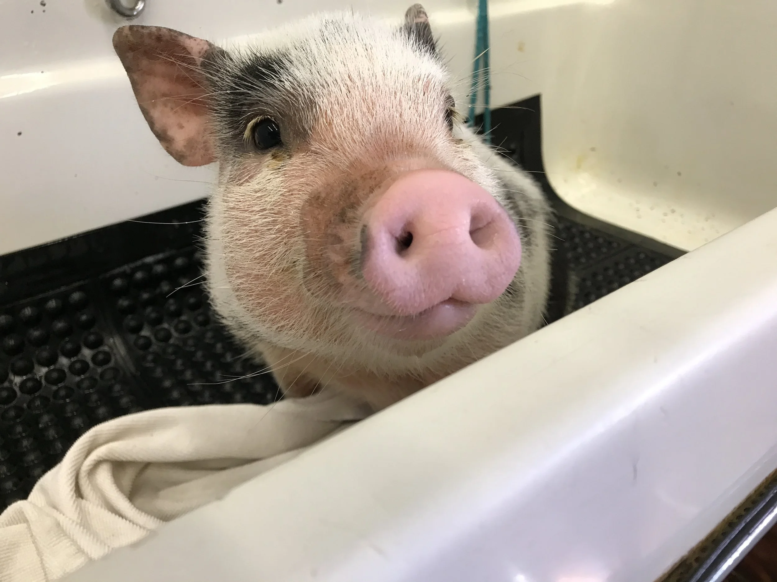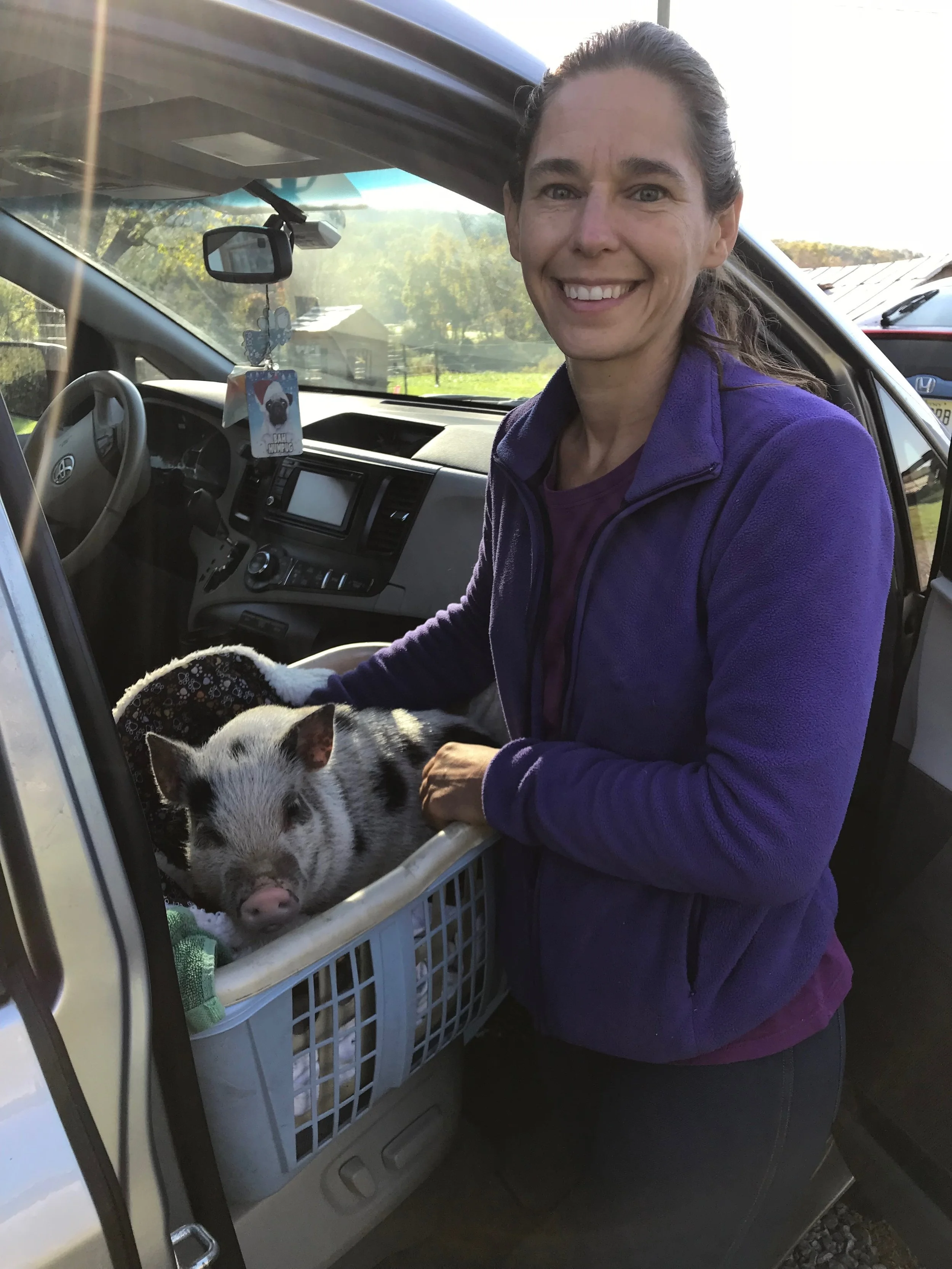 i drove her straight to mount laurel animal hospital because that was the only place that had someone on staff that could see a pig. that place is AMAZING!!!!! i wanted to get her checked out to make sure she didn't have anything that could be passed on to my other animals.