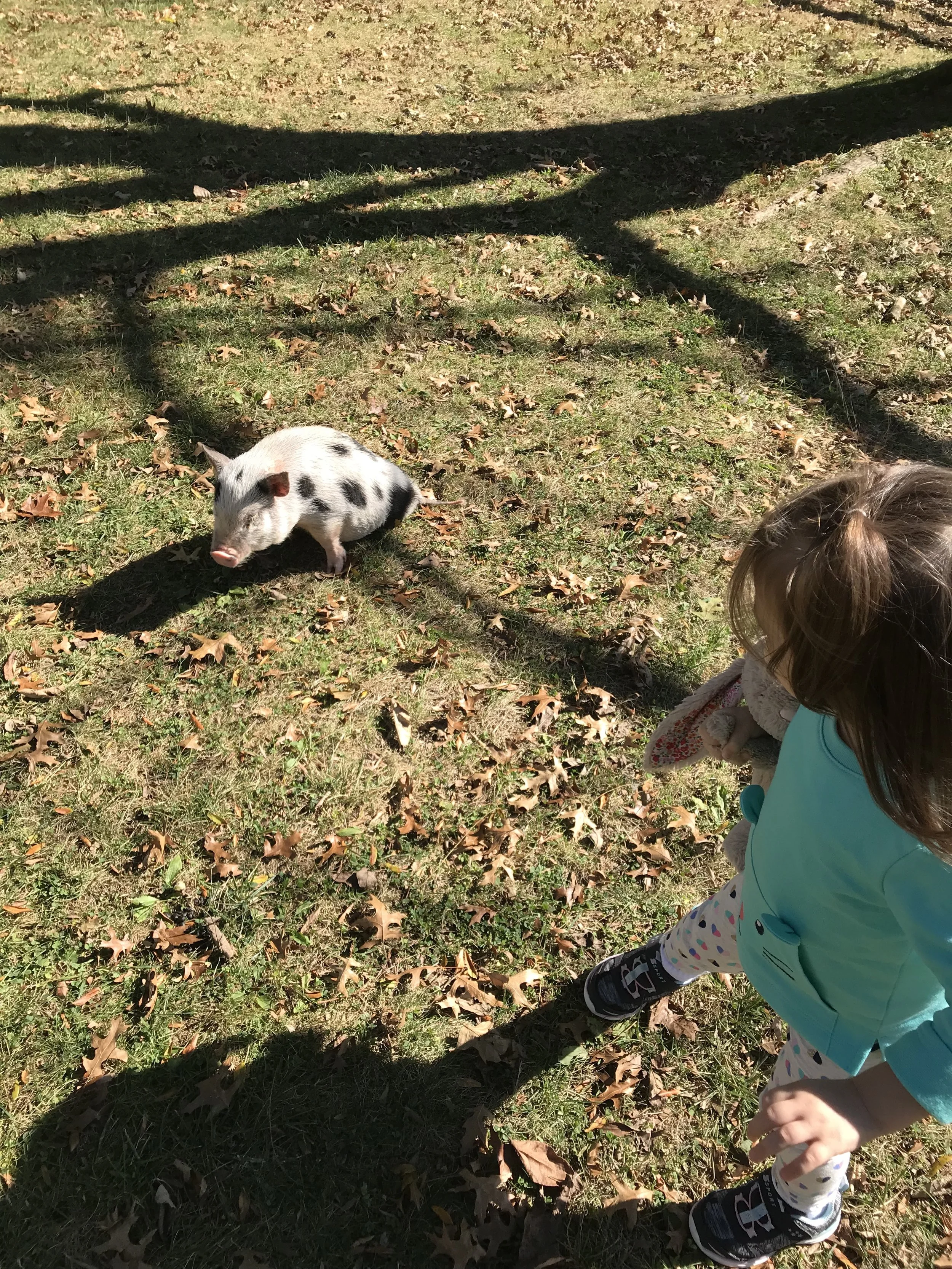 i asked mike (my husband) & he was kind of neutral. so i decided to just visit this little piglet. she is 5months old born 4-11-17, weighs 16.53lbs & is called piglet :)