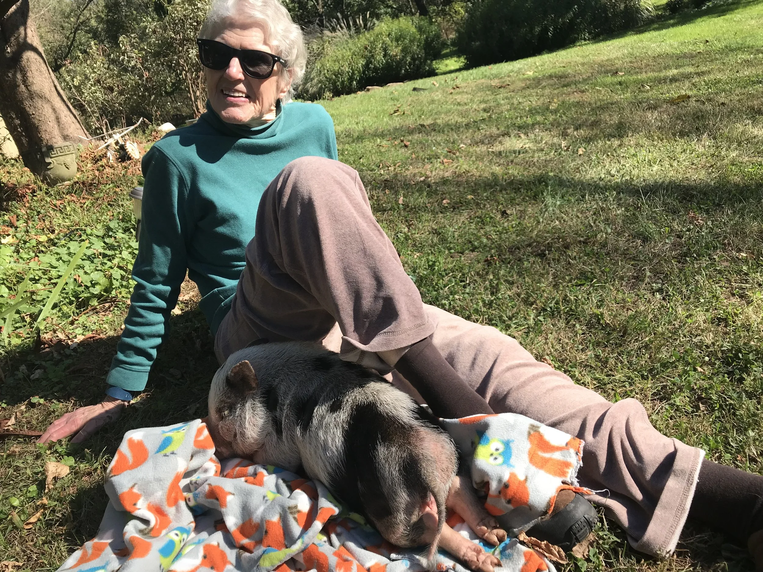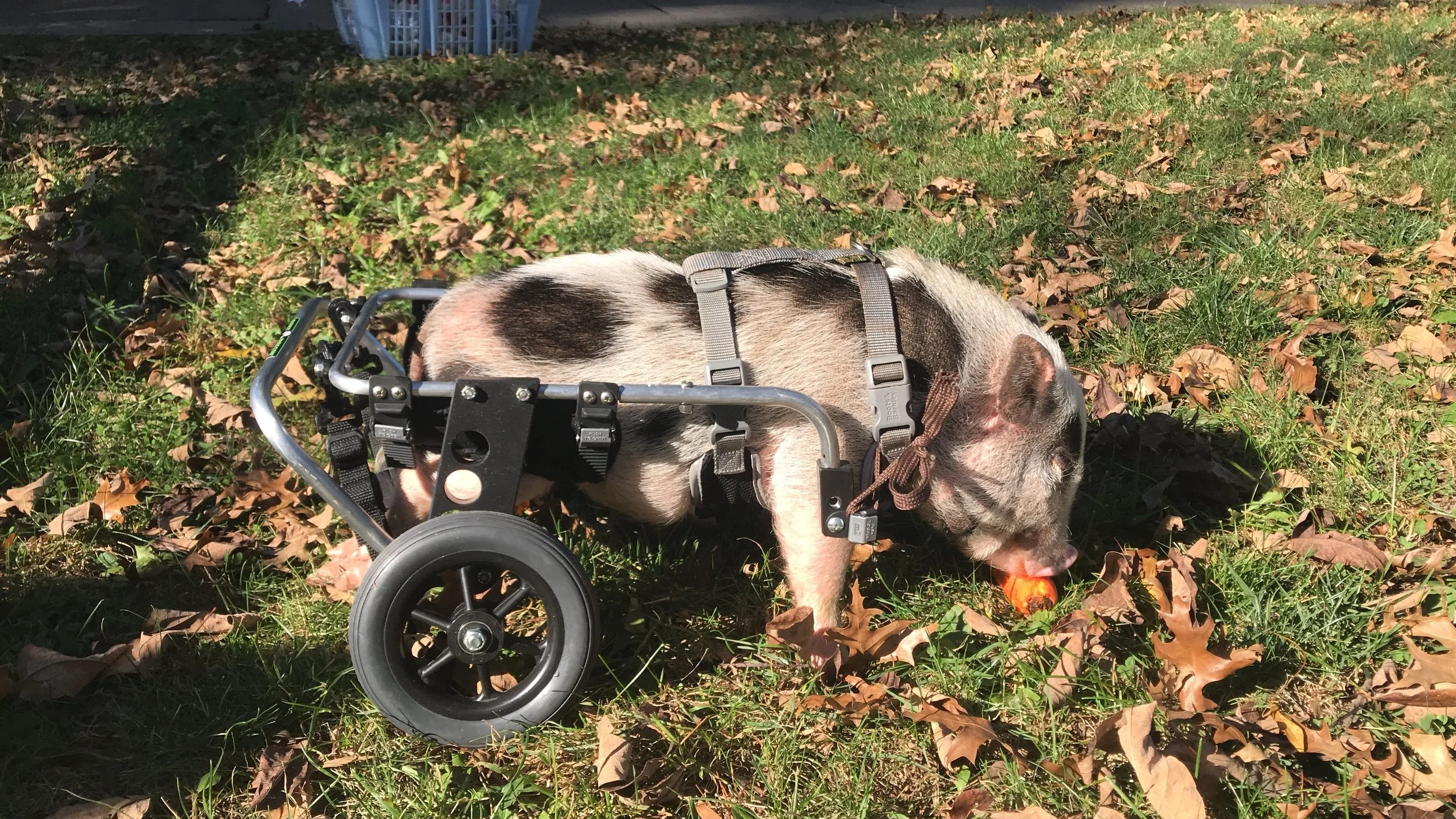 sooooooo... the lovely groomer at rosedale mills contacts me & asks if i would be interested in a piglet that her friend needs to rehome. this is no ordinary piglet ~ her back legs don't work but she pulls herself along just fine...